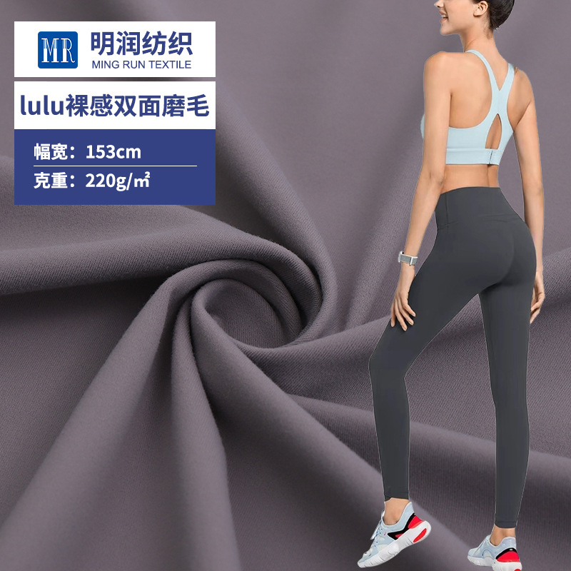lulu裸感双面磨毛面料 运动健身裤透气弹力布料 吸湿排汗高弹布料