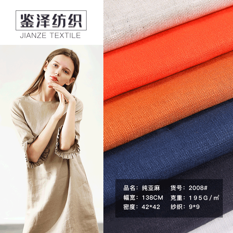 2008# 现货9支纯亚麻面料 素色亚麻布时装麻料家纺面料亚麻布料