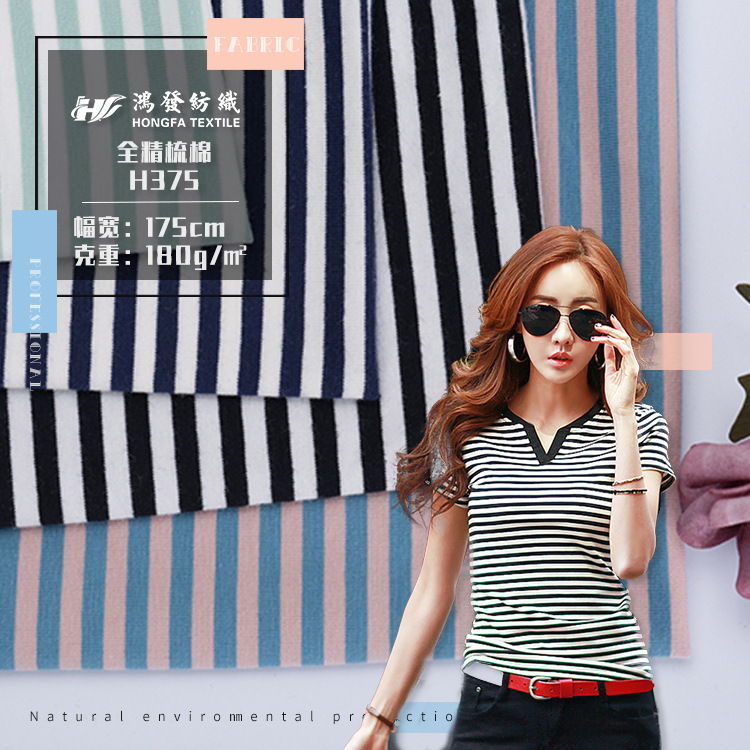 32支纯棉拉架针织条纹布料 精梳棉单面条纹汗布 黑白条纹T恤面料