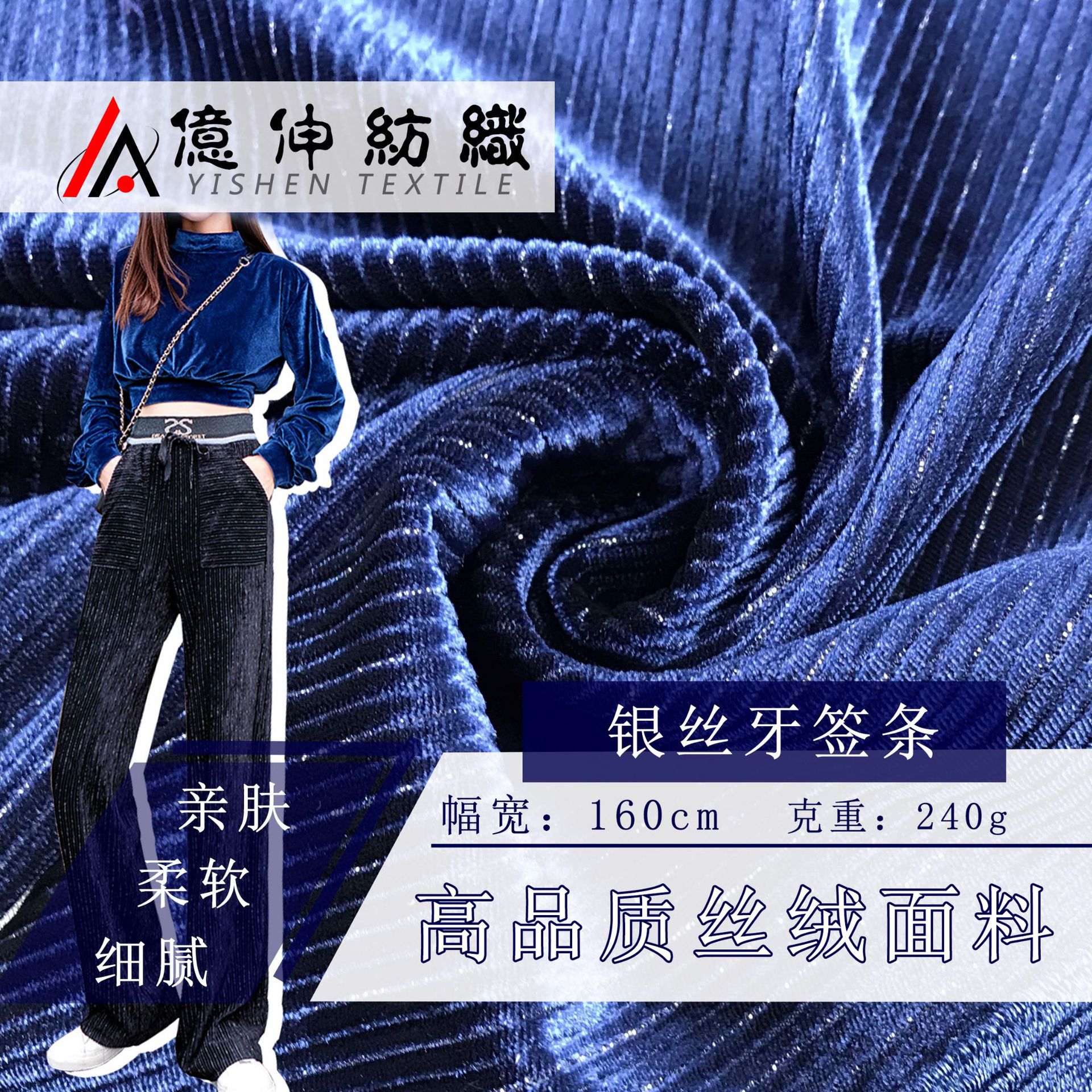 韩国绒面料现货 银丝牙签条细坑条针织灯芯绒 女装阔腿裤丝绒布料