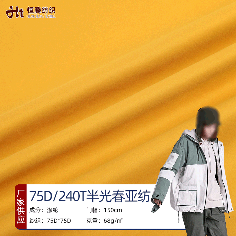 厂家供应75D240T半光春亚纺 轻薄校服棉服冲锋衣校服羽绒服面料