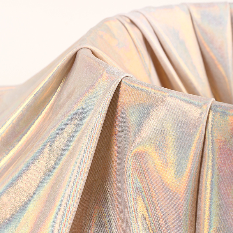 来样制作 平纹精细烫金面料 素面镭射烫金布 连衣裙时装用布