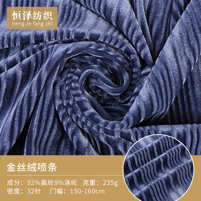 现货供应50D蓝色经编运动装裤装旗袍家纺玩具氨纶绒布 金丝绒喷条