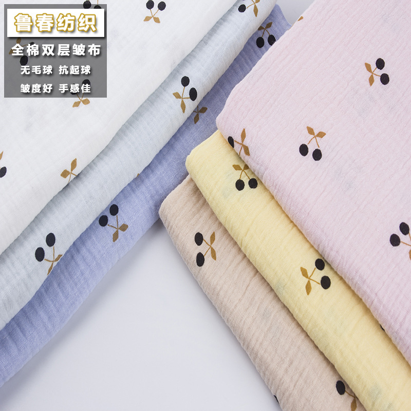 全棉双层纱布 褶皱布印花 睡衣面料 月子服家居服童装家居童被