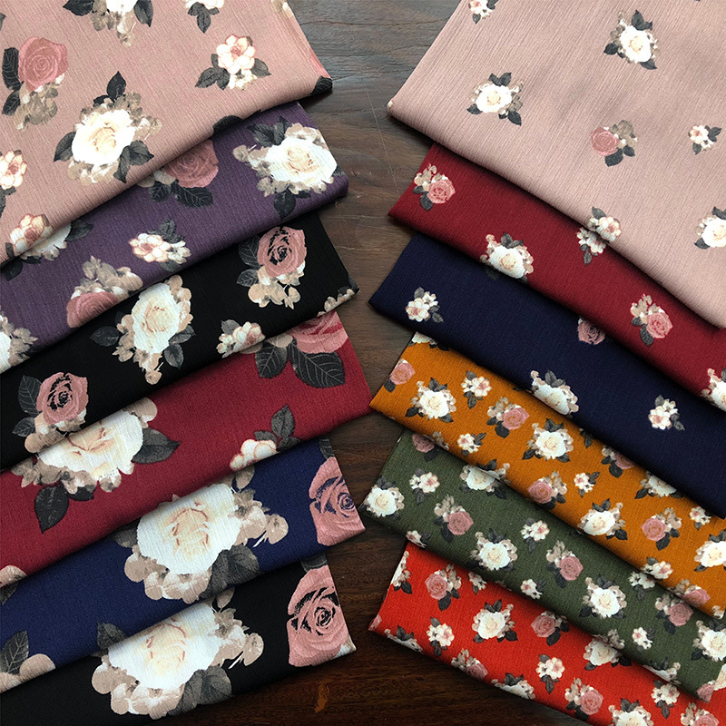 人棉绉布印花 3024人造棉皱布 玫瑰花小碎花夏日度假连衣裙面料