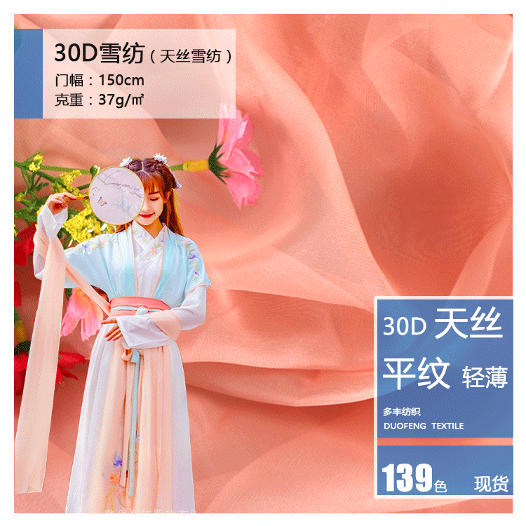 天丝雪纺面料服装女装上衣丝巾围巾里料汉服古装连衣裙30D雪纺布