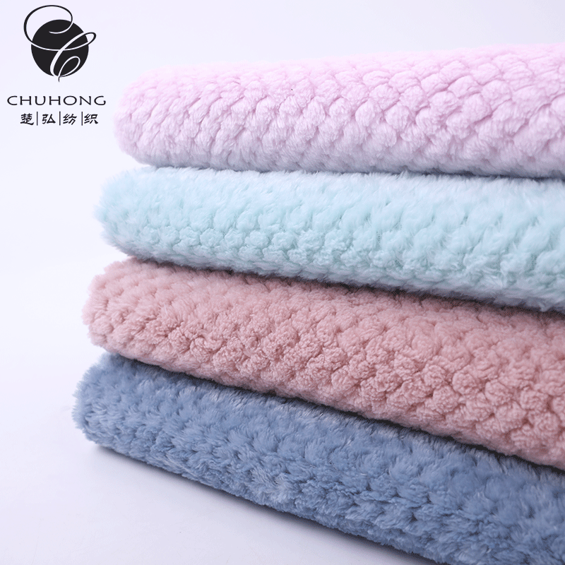 现货双面法兰绒菠萝格 贝贝绒素色提花绒布 家纺睡衣家居服面料