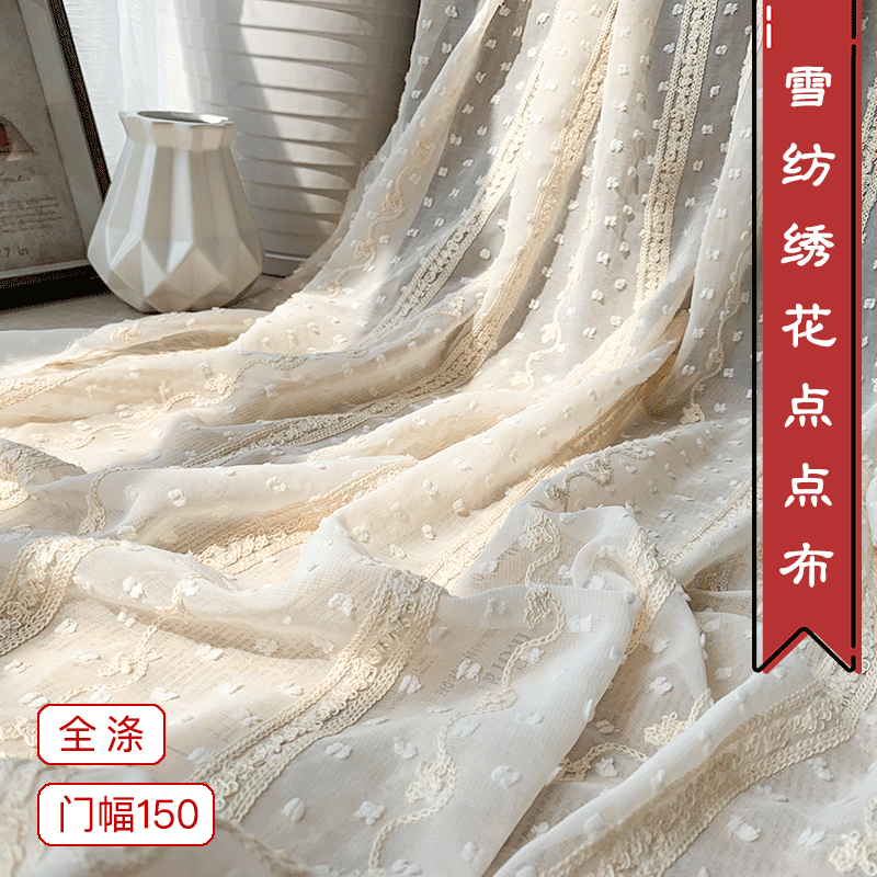 条纹绣线雪纺毛毛球点点绣花面料春夏新品小清新梭织提花剪花布料