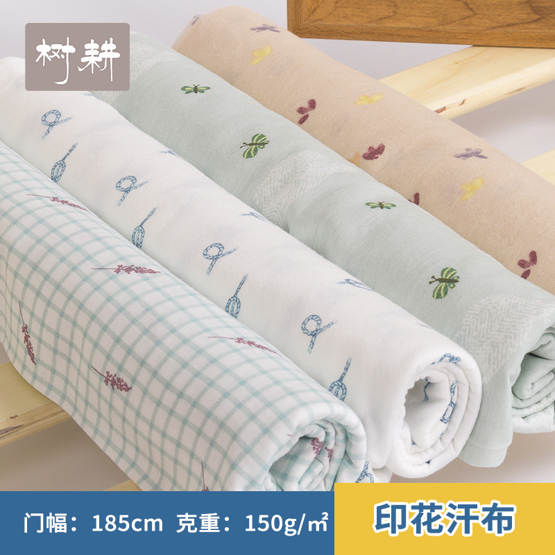 32s精梳棉针织印花竹棉汗布 婴幼儿A类面料 春夏婴童t恤布料现货