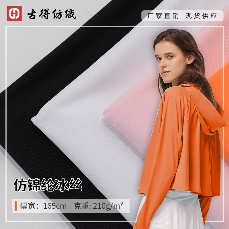 仿锦纶冰丝 涤纶氨纶高弹针织面料 T恤防晒衣袖套瑜伽服布料现货