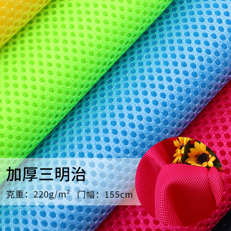 三明治夹层经编3D网布 75D精梳全涤针织面料 春夏服装鞋材面料