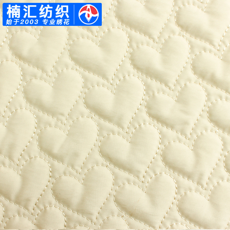 绣花面料绗缝春亚纺布料刺绣棉衣裥棉爱心夹棉家纺电脑衍缝绗绣厂