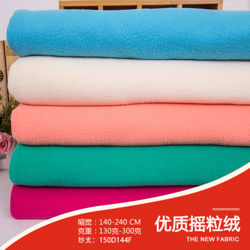 本厂主要经营产品有:各类染色印花摇粒绒等不同材质;如半光、低弹(含超细144F、288F)、短纤、麻灰等的摇粒绒(染色,印花,压花,复合);剪毛绒(染色,印花);单双面绒(染色,印花).成品的门幅可以是140CM-280CM之间;其克重跟品质也可以根据客户需求.