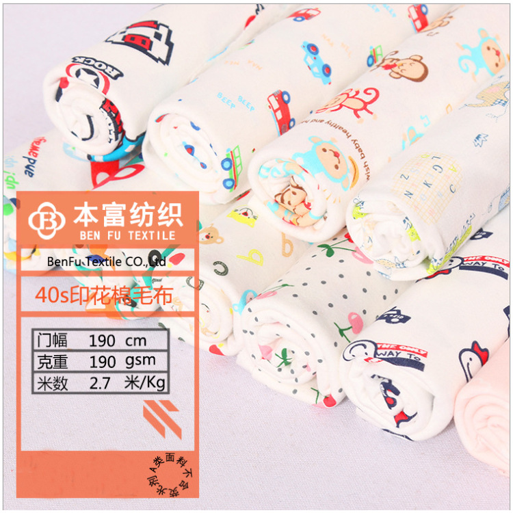 40s全棉双面棉毛布印花 a类婴童内衣面料宝宝睡衣家居服纯棉布料