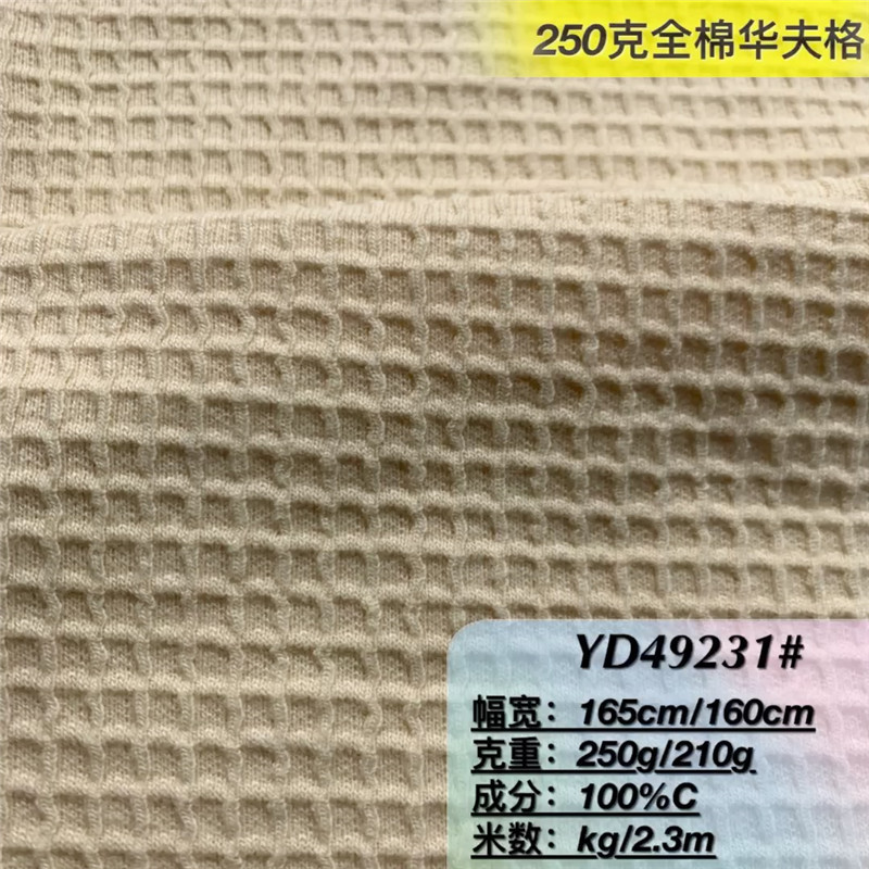 250克全棉华夫格针织提花面料 秋冬女装纯棉打底衫T恤服装辅料布