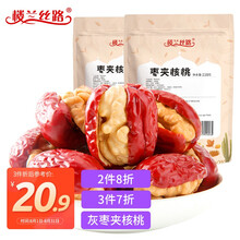 广东友汕互联网技术有限公司楼兰丝路 红枣 灰枣夹核桃仁 休闲零食 蜜饯果干 枣夹核桃量贩装218g/袋*2
