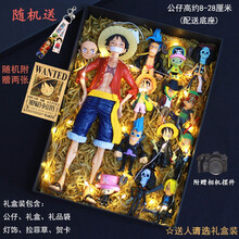 tengma【带底座可站立】海贼王手办Q版动漫模型公仔草帽路飞2档摆件玩偶男女朋友生日礼物七夕情人儿童节520 大路飞+12款合集/高约8-28厘米 礼盒装+底座+灯...
