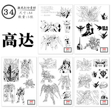 三木章 激光打印素材 主题分类二号 橡皮章A4雕刻图纸 可洗甲水转印图纸 动漫图纸 25-48组橡皮 34_高达(5张)