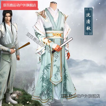 tengma人渣反派自救系统沈清秋cos服动漫沈垣cosplay套装男古装汉服周边 沈清秋服装+扇子+头冠+假发+鞋子 L 男生