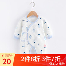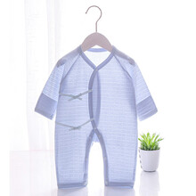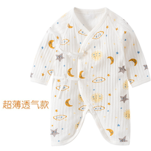 婴儿夏季衣服透气薄款连体衣新生儿宝宝爬服哈衣夏季空调服内衣 长袖系带蓝 59cm
