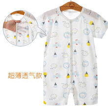 夏季薄款婴儿衣服竹纤维短袖哈衣0-3个月-1岁女宝宝新生儿连体衣 【短袖】萌萌兔 59cm
