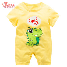 婴儿短袖连体衣纯棉宝宝夏装睡衣服2哈衣6新生幼儿3个月0-1岁夏季 短袖黄色小恐龙 59cm