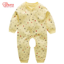新生儿秋冬衣服3个月纯棉初生婴儿连体哈衣蝴蝶衣男女宝宝和尚服 【蝴蝶衣】黄色英文 59cm