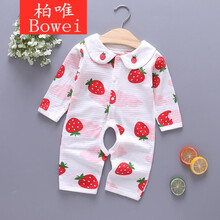 夏秋春婴儿连体衣服棉新生幼儿秋装睡衣女男宝哈衣长袖分袖gyl 空调服草莓 59 建议0-2个月