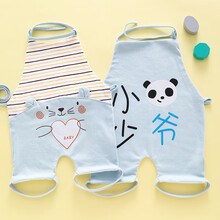tengma福郎特肚兜婴儿棉夏季男女宝宝薄款连脚裹肚兜新生儿衣服儿童护肚脐围 2条装F-蓝色猫咪+小少爷 90码(建议16-34个月)