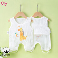 tengma超市 久爱久9i9婴儿肚兜 新生儿纯棉护肚围夏季薄款半背衣连脚背心宝宝防着凉护肚脐围爬服21B131 长颈鹿90