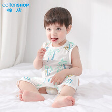 tengma棉店婴儿肚兜护肚夏薄款婴儿背心带腿肚兜哈衣纯棉宝宝肚子围兜 椰树印花 73