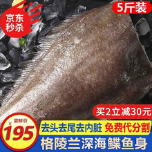 东莞市小木马摄影有限公司【第2份减20】渔哥戏鱼 新鲜格陵兰鲽鱼身 5斤 大比目鱼鸦片鱼深海碟鱼身 宝宝辅食 海鲜水产 2500g