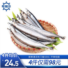 东莞市小木马摄影有限公司鲜船长 新鲜速冻秋刀鱼500g/约5-6条袋装 烧烤食材 海鲜水产 秋刀鱼(1斤装)