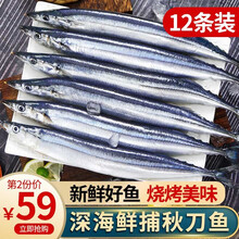 东莞市小木马摄影有限公司集鲜港 鲜活船冻秋刀鱼 烧烤食材 鲜活冷冻 海鲜水产 坏单包退 无冰净重12条装1200g