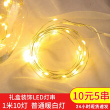贵港市港北区傲逸百货店RDBS 生日礼物装饰LED小彩灯礼盒生日装饰用品灯满天星星灯情人节表白房间布置发光小灯串 暖白灯串(1米10灯)5条装