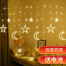 贵港市港北区傲逸百货店超市 欧妮姿 led灯装饰彩灯带闪月亮星星串灯七夕情人节生日场景布置结婚浪漫房间窗帘装饰灯串 暖色3.5米电池款