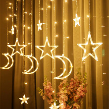 贵港市港北区傲逸百货店超市 led星星灯 小彩灯带闪灯月亮串灯满天星生日布置节庆饰品结婚室内装饰灯带饰卧室浪漫情人节房间窗帘灯串 暖白色3.5米【8种闪烁模式 】