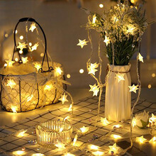 贵港市港北区傲逸百货店超市 墨斗鱼 LED灯小彩灯 满天星闪灯婚庆生日聚会节日庆典表白串灯挂墙装饰灯 暖白色星星灯3米20灯电池款