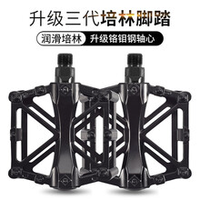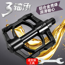 贵港市港北区傲逸百货店ROGTYO自行车脚踏公路车铝合金三陪林脚踏折叠车通用脚蹬子顺畅防滑铝合金脚踏板山地车骑行配件 三轴承润滑款-黑色+工具