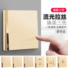 简约百搭 拉丝香槟金开关/插座/大面板家用墙壁空调热水器86型多孔五孔插明装暗装 一二三四位单控双控 补价专拍