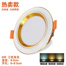 led筒灯天花灯三色变光嵌入式客厅家用射灯过道孔灯亮吊顶洞灯 白+金5W孔6-8.5【三色变光】