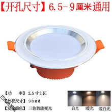 led2寸筒灯嵌入式开孔5公分5.5 6.5 6cm客厅家用射灯三色小孔铜灯 3W三色变光开孔6.5-8cm