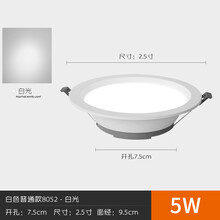led射灯筒灯洞灯孔灯三色天花灯开孔过道客厅嵌入工程3/9/12/18瓦 白光 5瓦开孔6.5-8.5CM