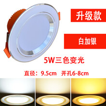 led筒灯嵌入式家用射灯客厅吊顶天花板天花孔灯洞灯简灯三色5w3w 升级款】5瓦白加银三色 开孔6-8.5厘米