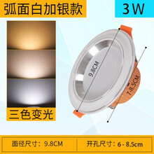 哥本LED筒灯家用牛眼灯三色变光嵌入式天花灯孔灯65公分客厅吊顶射灯明装过道桶灯 弧形3W银面变光【促销】 10个起