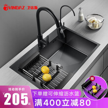 东莞市腾玛智能科技有限公司卫达斯(VINDAZ)纳米水槽单槽 洗菜池洗菜盆厨房水盆304不锈钢洗碗池 黑色手工加厚台下盆大单槽 C套餐-水槽+黑色厨房抽拉龙头 60*45cm
