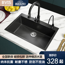 东莞市腾玛智能科技有限公司德国BVIS卫浴纳米单槽洗菜盆灰黑色水槽套装304不锈钢台上台中台下盆洗碗槽洗菜池加厚手工盆淘菜盆 标准套餐(不含龙头) 尺寸 50X40 CM