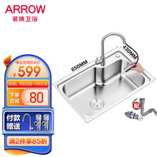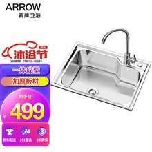 东莞市腾玛智能科技有限公司超市 箭牌(ARROW)304不锈钢厨房水槽单槽洗菜盆 厨房洗手盆带龙头洗菜池水槽AE5562122G-JZ