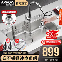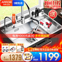 东莞市腾玛智能科技有限公司箭牌卫浴(ARROW)手工水槽大单槽304不锈钢水槽套餐加厚洗菜盆 台下台上洗碗槽多功能台控水槽 【B款】70*45+精铜抽拉龙头(店长力荐)