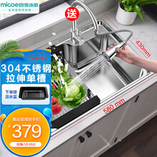 东莞市腾玛智能科技有限公司超市 四季沐歌(MICOE)304不锈钢单槽水槽 厨房水槽抽拉龙头 洗菜池 洗碗槽 大容量单槽套装 抽拉龙头单槽